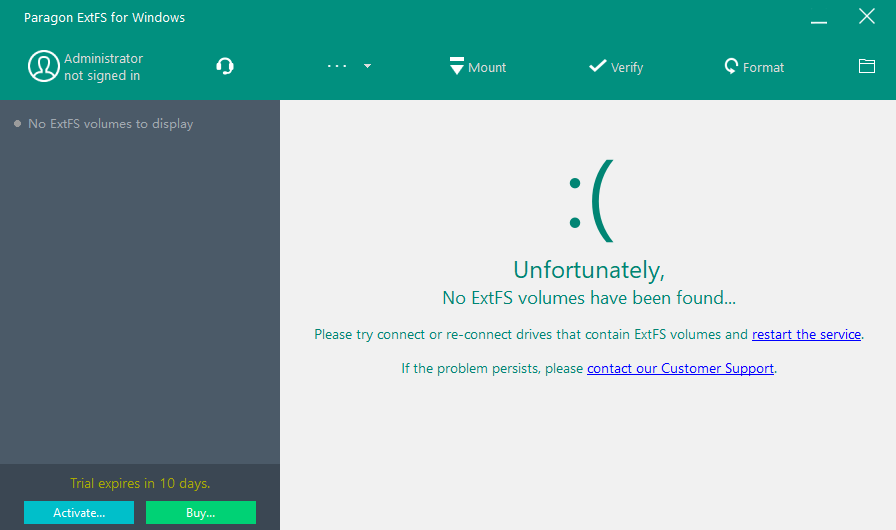 请注意, Paragon ExtFS for Windows 当前不支持 bigalloc, journal_dev, meta_bg 功能。