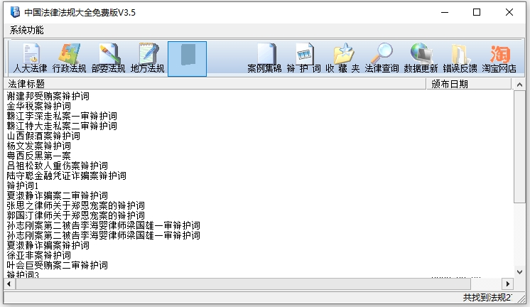 再说说它的优势吧,分类特别精细,300多部法律分门别类,一看就明白。快速索引和全文搜索也很赞,找法律条文特别快,操作简单直接。而且软件一直在更新,最近还新增了七千多条法规,数据量达到了十二万多条,内容超全面。