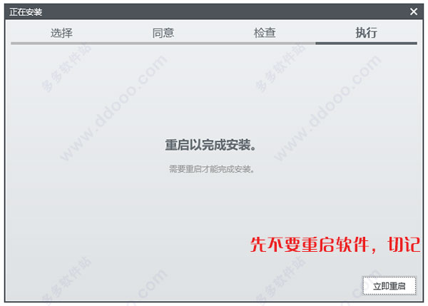8、继续重试安装好软件,直接完成,但不要重启软件,直接右上角关闭;