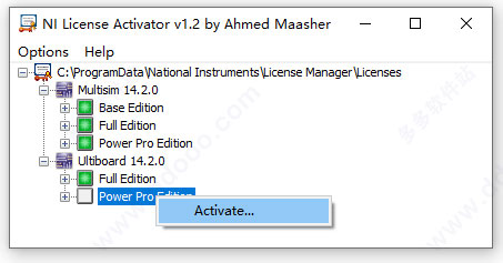 9、再打开crack文件夹,双击“NI License Activator 1.2.exe”右键点击选择Active,所有框由灰变绿就可以。