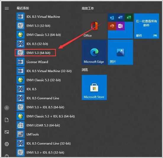 13、打开系统开始菜单,点击运行ENVI 5.3软件;
