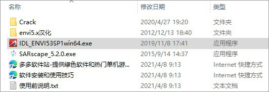 1、在本站下载解压,得到envi5.3 sp1的安装包,envi5.3破解文件和envi5.3中文补丁;