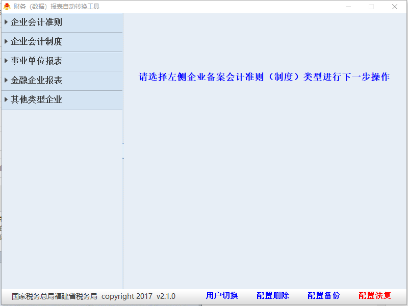 财务报表自动转换工具官方版是国家税务总局福建省税务局推出的一款非常实用的报表转换工具。这款工具包括企业会计准则、企业会计制度、事业单位报表、金融企业报表、其他类型企业等功能,可以将自有财务软件生成的财务报表导入软件,避免手工填写和纳税人自有软件二次开发,已有的财务数据自动转换到标准的财务信息采集表,即可完成财务报表网络申报,适合财务人员转换申报数据。