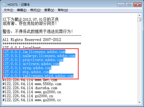8、将下列内容复制入内保存,屏蔽联网激活。