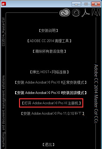 4、回到安装文件,选择“打开Adobe Acrobat XI Pro注册机”