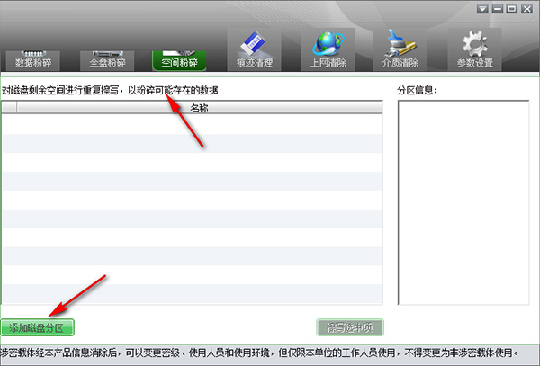 3、磁盘剩余空间: 单个或多个磁盘的剩余空间进行擦除、数据粉碎;