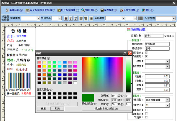 注:该图画面是高级版本的标签设计界面,与普及版本的标签设计画面及功能不同,