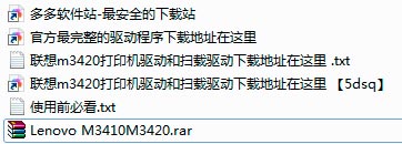 1、下载解压得到联想m3420打印机驱动和扫描驱动程序;