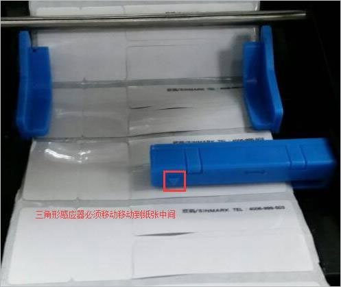 以珠宝标签为例,首先要把机器上面的感应器移动到标签纸的中间感应器位置;