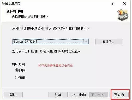 再从列表中选择打印机,以及所打印的方向;