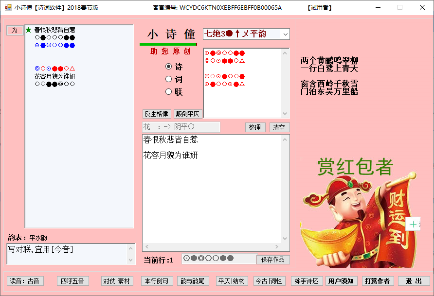 软件功能很强大,比如支持各种诗歌形式,还能调整格律和音韵,感觉就像是一个诗词创作的全能工具。操作也很方便,特别是可以通过输入对象的名字生成情诗这点,既有趣又能表达情感,有点像“装逼”神器的感觉,哈哈。