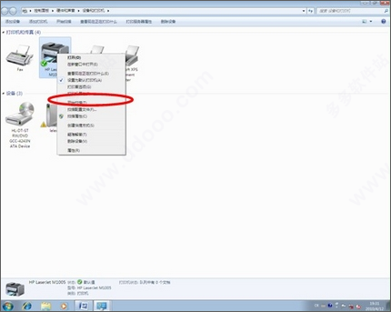 4、开始——设置——打印机和传真——1005的驱动图标这是已经出现,右键选属性——-端口——默认是LPT1——往下拉——看到USB端口选择——确定
