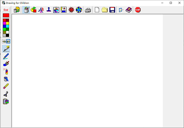 drawing for children是一款简单好用,生动形象的儿童绘画软件。它虽是一款相当古老的绘图软件,其最新版本日期是2000年,但不得不对这款极其小巧而又功能的软件异常丰富的功能刮目相看,特别是图章工具,更有特色。