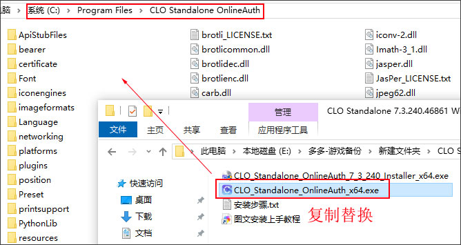 6、拷贝激活文件CLO_Standalone_OnlineAuth_x64.exe到软件安装目录下;