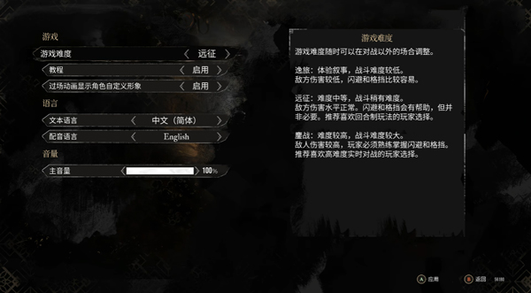 2、接着选择游戏难度,以及调整游戏语言、音量等设置;