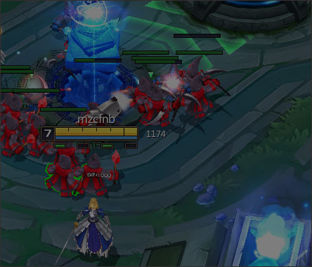 (6)摧毁敌方中路中塔,躲在小兵身后,避免承受塔的伤害: