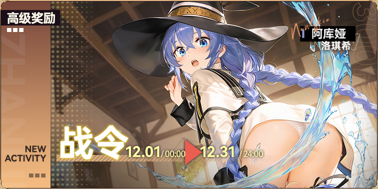 活动内容:完成战令任务,提升战令等级,获取对应奖励。购买高级奖励解锁皮肤 洛琪希(阿库娅)并开放新增的限定商品购买
