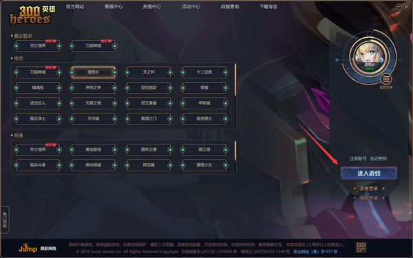4、登入之后,选择好服务器,点击进入游戏即可: