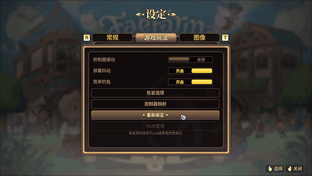 4、然后在设定界面的游戏玩法一栏选择并点击“重新绑定”的按钮选项;