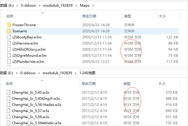 注:后缀为 W3X 的是 冰封王座(TFT) 的地图,后缀为 W3M 的是 混乱之治(ROC) 的地图。