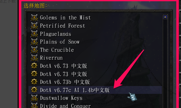 2、将地图文件放到魔兽争霸Maps\Download\ 目录下,进入游戏后选择此地图即可。