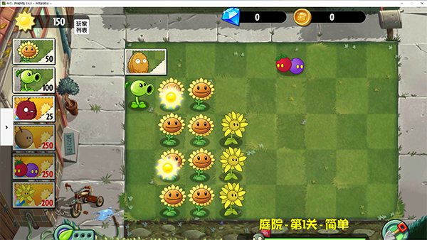 2、来到庭院我们先需要打通前面的关卡来补充我们的植物。