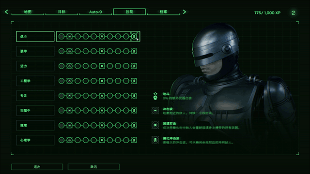 我只能说,如果你是冲着当机械战警来的,那么你大概率会觉得很无聊。因为,这游戏全流程大概也就10个小时出头;Auto-9手枪的芯片改装除了用来圆无限子弹的Bug外,没有任何意义;RPG的升级加点系统非常浅显,而且和半线性的关卡流程完全脱节。