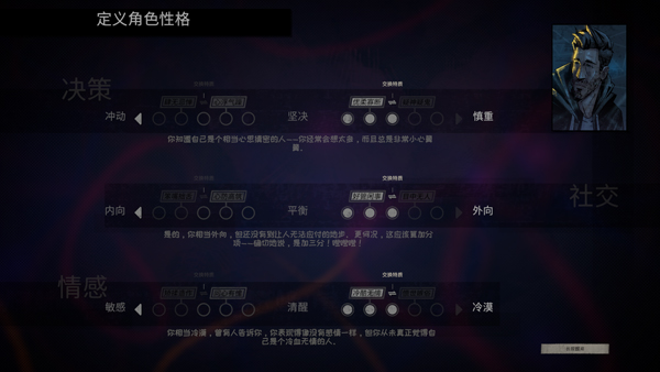 4、设置好后返回,点击新游戏,玩家可自定义角色性格;