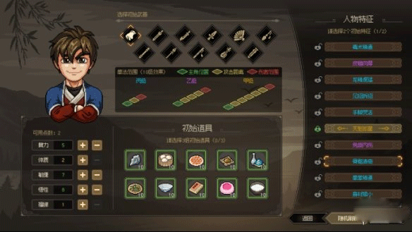 因为整体加点偏重了悟性和敏捷,所以在人物天赋上选择天煞孤星搭配骨骼清奇,这样体质、臂力、敏捷还能各加上1点,进入游戏之后在武道方面优先加“风”将集气速度和连击率提升上来。