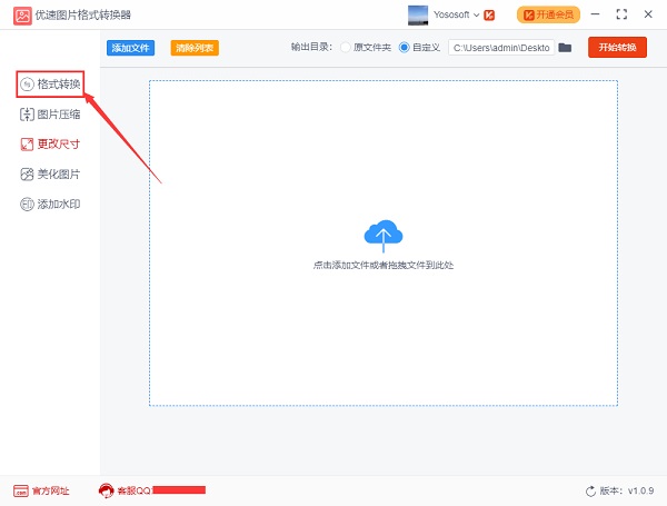 第一步,先下载“优速图片格式转换器”软件,然后安装打开使用,点击左边五个功能中最上方的【格式转换】功能,进入下一步。