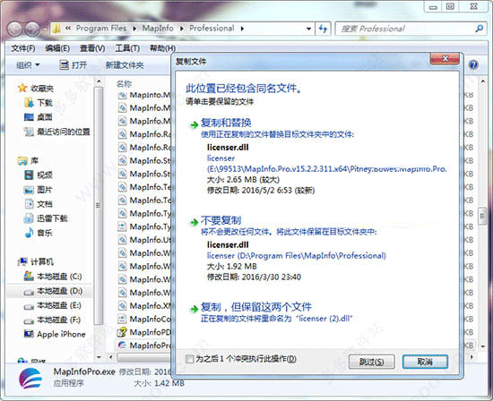 7、最后打开安装包“patched”目录,将MapInfo15补丁“licenser.dll”和“micore_ux.dll”复制到安装目录下覆盖源文件即可完成。