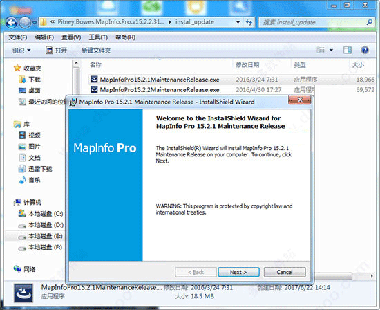 6、然后打开“install_update”目录,依次运行“MapInfoPro15.2.1MaintenanceRelease.exe”和“MapInfoPro15.2.2MaintenanceRelease.exe”升级MapInfo 15