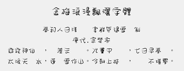本站金梅浪漫飘洒字体资源仅供个人学习与参考,如需商业使用请到相关官网授权。