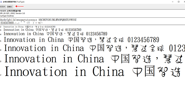 2、双击字体文件,在打开的字体文件界面上点击最上方的“安装”按钮,就可以将该字体安装到系统中