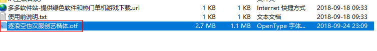 ①在本站下载安装完成之后,解压缩【逐浪空也汉服创艺楷体.otf】