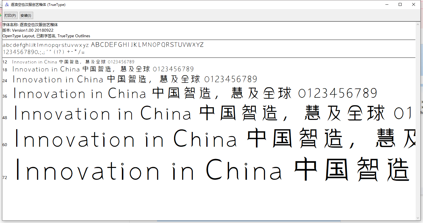 逐浪空也汉服创艺楷体是一款适用性非常广泛的中文楷体字体,该字体以汉服为标准的字体设计,如汉服之造型,上紧下宽,飘逸自然,较常规汉字,会略有缩宫(即放大一号使用)视觉效果更好,并且严格按照GB12345-90标准,还融合逐浪字库流行生僻字集,能够应用于文本装潢、信息展示、网页设计、篆刻制模、数据制作、装潢设计、计算艺术设计、视觉设计、字帖等一切合法应用场景,有喜欢的朋友可免费下载收藏。
