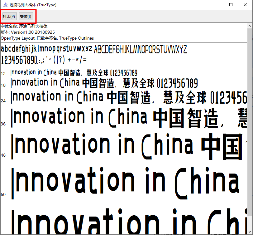 ②可以看见左上角的打印和安装,点击安装即可安装成功,有需求的还可以打印出来哦