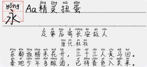 Aa精灵扭蛋字体是一款热门的手写艺术字体,由Aa字库出品,该字体深受大家喜爱,同时还支持汉字和拼音同步输入,张扬又带有小个性,其字体的笔触纤细,拥有非常不错的视觉感,可以很好的应用于文本装潢、信息展示、网页设计、篆刻制模、数据制作、装潢设计、计算艺术设计、视觉设计、字帖等一切合法应用场景,有感兴趣的小伙伴可前来免费下载体验。