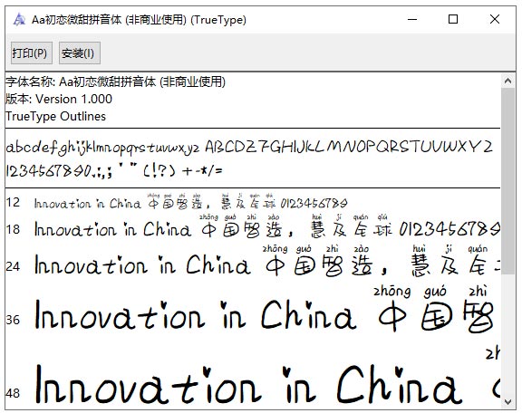 aa初恋微甜拼音体ttf是一款非常不错的中文字体,该字体线条粗细适中,每个汉字都带有拼音效果,其视觉阅读极具层次感,效果非常的出色,可以应用于文本装潢、信息展示、网页设计、篆刻制模、数据制作、装潢设计、计算艺术设计、视觉设计、字帖等一切合法应用场景,有喜欢的朋友可免费下载收藏。