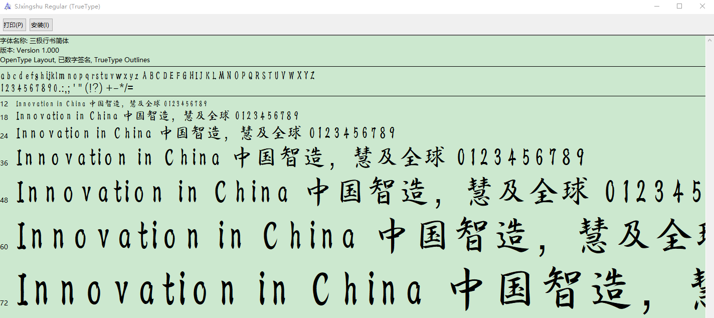三极行书简体是字体视界推出的一款简单实用的书法字体,该字体结构紧凑,笔画写意,笔意连接张弛有度,遒劲有力,可以应用于文本装潢、信息展示、网页设计、篆刻制模、数据制作、装潢设计、计算艺术设计、视觉设计、字帖等一切合法应用场景,有喜欢的朋友可免费下载收藏。