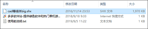 在本站下载并解压好软件后,双击压缩包文件夹中的“cad等线体big.shx”就可以开始运行程序了;