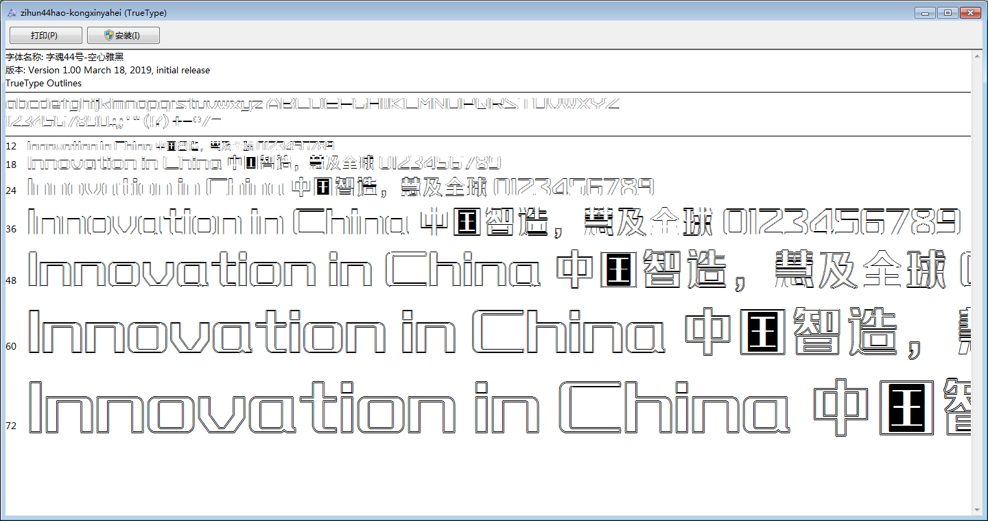 字魂44号空心雅黑是一款非常不错的中文空心字体,该款字采用了空心结构,字形端正大方得体,能够应用于文本装潢、信息展示、网页设计、篆刻制模、数据制作、装潢设计、计算艺术设计、视觉设计、字帖等一切合法应用场景,有喜欢的朋友可免费下载收藏。