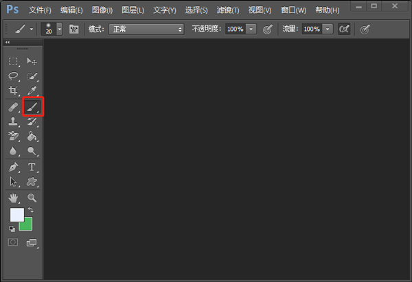 2、在PS界面中选择画笔工具,点击画笔预设按钮。