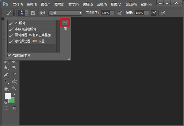 3、点击画笔工具框右上角的设置符号。