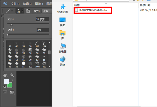 6、点击载入即可,在PS上使用卡通美女模特笔刷工具。