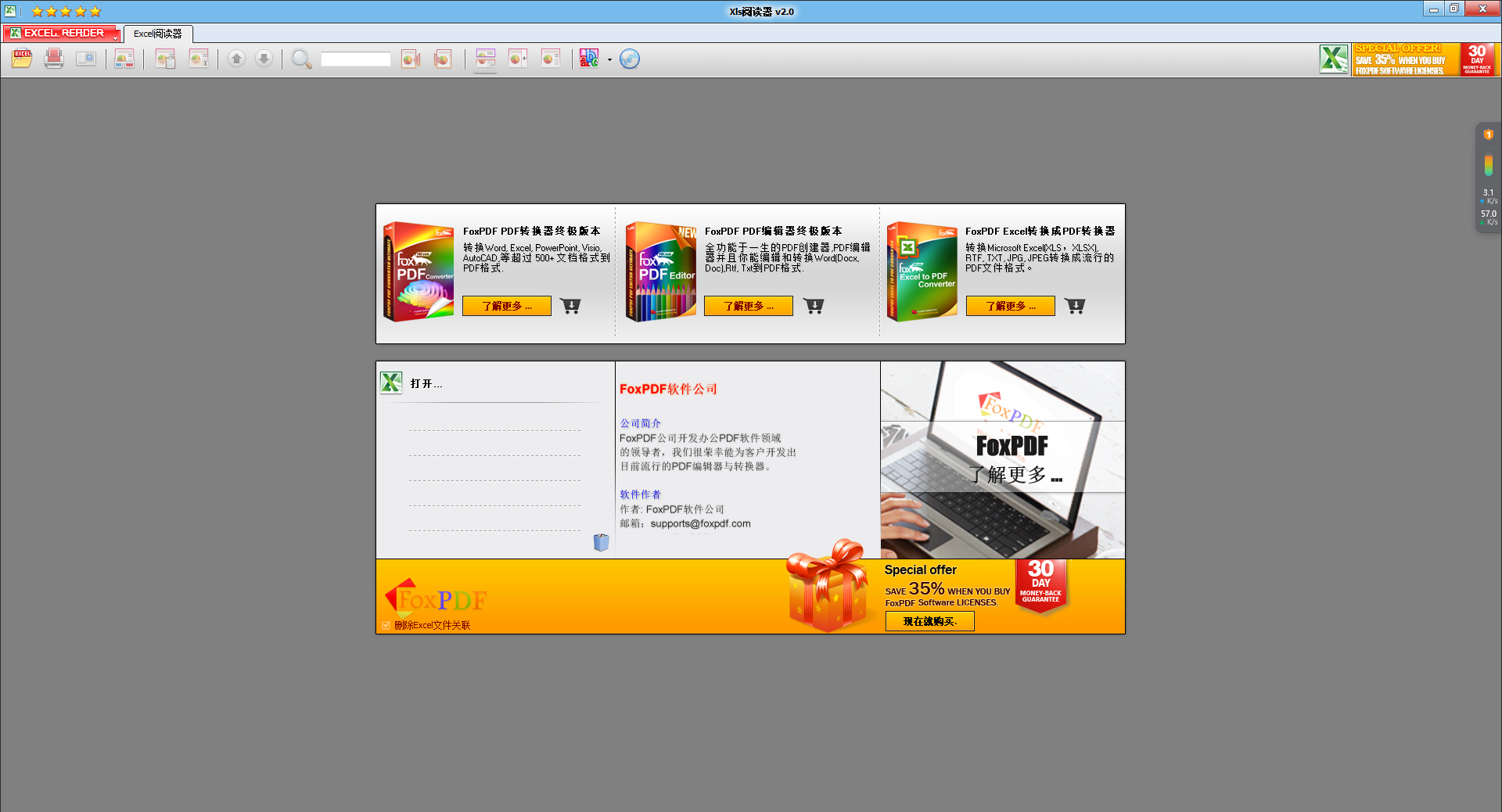 最让我喜欢的是它的兼容性很好,不仅可以打开普通的xls文件,还能处理xlsx格式的文件,甚至还能支持一些从FoxPDF转换过来的xls文件。这对于需要处理不同格式文件的人来说特别有用。
