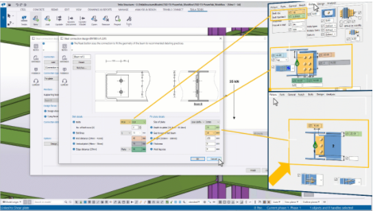 现在,您可以使用 Tekla Tedds 中的“钢结构简单节点设计 (EN1993)”计算器来利用完整的节点设计工作流。自动传输 相关的Tekla Structures 系统组件 的设计数据,例如剪切板和端板。
