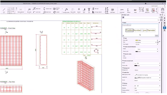 创建带有钢筋弯曲表的现浇混凝土钢筋图纸