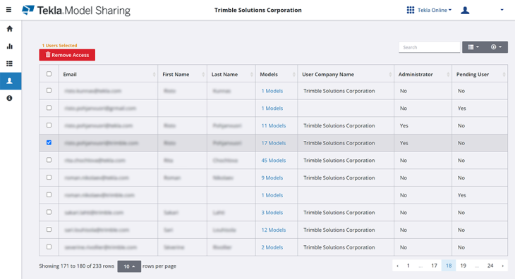 9、Tekla Model Sharing 管理控制台中的新用户菜单