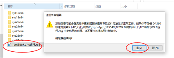 8、再运行"T20给排水V7.0运行。reg"注册表,点击是;